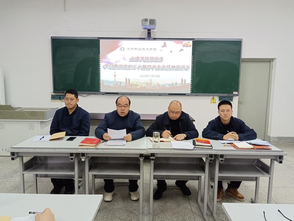 11月19日,土建学院党总支在四号实训楼202室召开学习贯彻党的二十届四中全会精神宣讲会。土建学院全体党员干部、教职工、入党积极分子及各在校班级班长、团支书参加会议,会议由土建学院院长王垚主持。